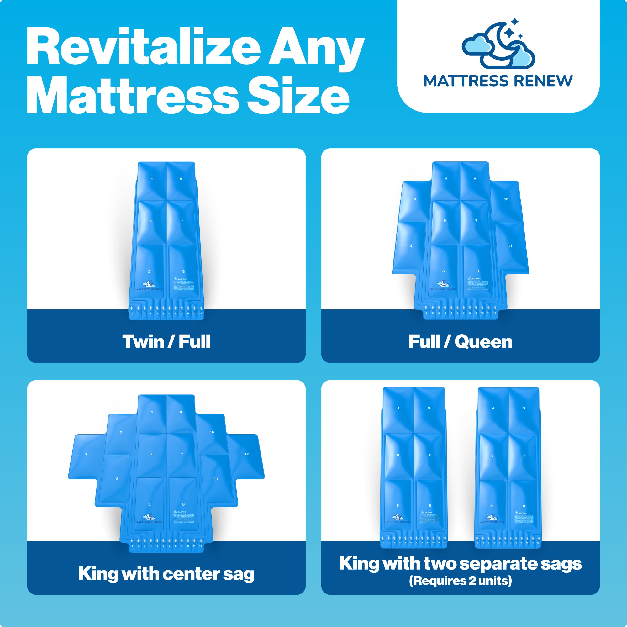 For Twin and Full mattresses, simply fold away any unused air chambers. For King-sized mattresses with multiple sagging areas, you may need two Mattress ReNew units to address separate dips. If the sagging is centralized, one unit is all you need for a quick and effective fix.